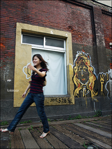 趁著夕陽傾斜未倒,我們到後火車站舊倉庫走走。台中後火車站的舊倉庫現今改成B咖藝術文化的聚集地,有改裝成咖啡廳的舊倉庫、展覽室、藝術家工作室,還有學生藝術交流區,也不定期會舉行一些活動和展覽。芭小姐充當我的模特兒,我瘋狂的按住快門,拍了百來張的照片,為我們輕鬆愉快的下午做個見證。