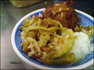 那稍早大鍋滷的魯汁淋在飯上,鹹甜剛好,整碗飄香。