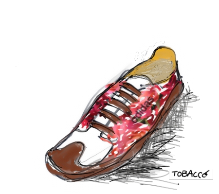 這雙鞋是我畫的第一張,是照著雜誌上的鞋子圖片畫的。