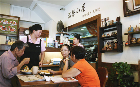 這家在不很小的巷子裡的轉角,甚至機車騎太快就會忽略的店,看起來有點不起眼,但是小館裡卻總是坐滿滿的客人。