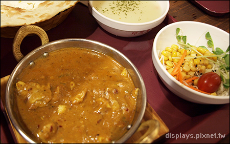 這個咖哩跟我們平常吃的咖哩飯咖哩口味真的很不一樣,很難形容,就是很特別,沾著烤餅吃。