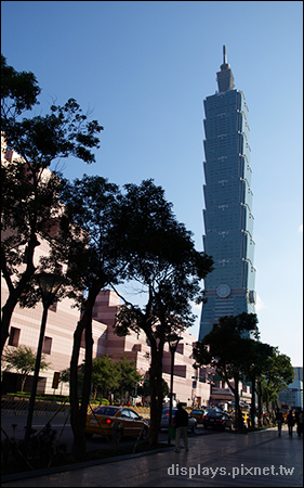以下補張早上9點20分的台北101高樓,前方階梯狀建築是台北世貿中心。