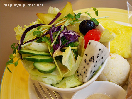 ↑套餐裡,除主食外,我最重視的就是沙拉,就像是一家美麗的餐廳,如果廁所裝設簡陋且出奇的髒,下次要再去肯定會讓我猶豫再三,它不是主角但卻又不可或缺。溫馨小屋的沙拉用料實在又很新鮮,淋上清爽的醬汁又附上調過味的沙拉醬,不管是想單吃或是沾沙拉醬皆美味,深得我心!