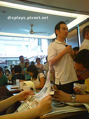 隔壁桌的情侶檔還自帶報紙來「悠閒」吃早餐,無畏眾人虎視眈眈覬覦他們內用桌子。