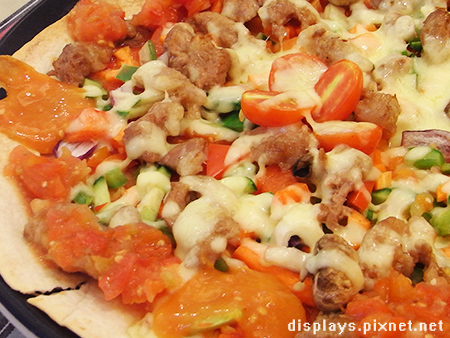 這個PIZZA,我很推薦!薄餅皮不會吃進過多的澱粉,上面還有滿滿的餡料、起司和特製的墨西哥醬,每一口都是滿足阿!!