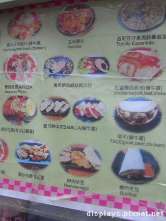 菜單是影印的,圖案不清楚,但是墨西哥老闆會幫你介紹,這是我們在門外拍的照片和菜單,很多都很想吃,取捨之下,點了墨西哥捲(吃墨西哥料理不吃墨西哥捲嗎?XD)、墨西哥PIZZA、蔬菜湯。