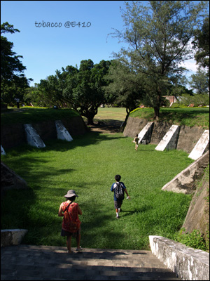 下午的第一站是億載金城,億載金城又名「二鯤身砲台」,因舊時此地名為二鯤身,安平古堡則在一鯤身。當時因牡丹社事件所引起的日軍犯台事件,欽差大臣沈葆禎奏請朝廷興蓋砲台,於1876年完成,這是法國人設計的,在古色古香中有一點法國鄉村的味道。