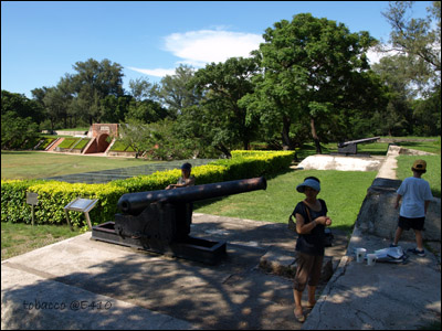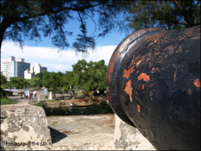 這裡是軍事用地,且是用來防禦外敵入侵的攻防點,所以囉,四方皆有砲口向外對著,不過百年來億載金城離海漸遠,已經沒有軍事價值,這些大砲,已經變成"觀賞"用途了。