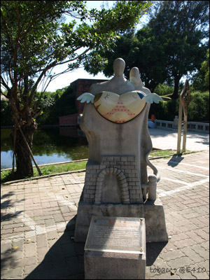 參觀完出去的時候發現了這個現代化雕塑,很久很久以前的記憶沒有,應該是這幾年出現的,這個雕塑是紀念外國醫生愛上本國小姐,最後有情人終成眷屬的故事。很不狗血的故事阿!不是通常都是悲劇才會有這樣的紀念雕刻?例如說外國醫生愛上本國小姐,但受到小姐家人的強烈反對,外國醫生約了小姐要一起私奔,卻沒想到被暗戀小姐的對象知道了去跟她家人通風報信,家人跑來這邊堵人,情急之下跳護城河自殺,所以就在護城河邊有了這個紀念兩人為愛走天涯的雕塑。不是通常悲情故事都是這樣發展的嗎...