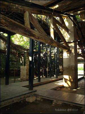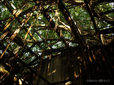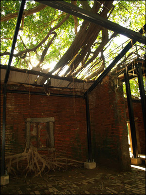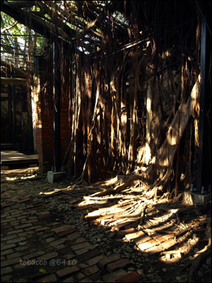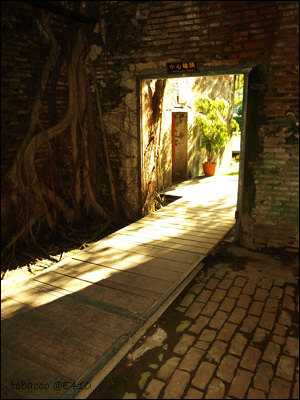 安平樹屋大概是這幾年才整理出來的一個景點,裡面有點像迷宮,有搭鑄鐵的樓梯可以走到二樓高的地方看風景跟樹根,去的時候正好是夕陽西下的時候,陽光斜射進來並帶著金黃,映射出交縱複雜、樹根盤結的斜影,很有FU。我很好奇的是,我記得以前來沒看過這個樹屋,這些大樹應該也是經過了幾十年幾百年才能形成,之前都藏去哪了?