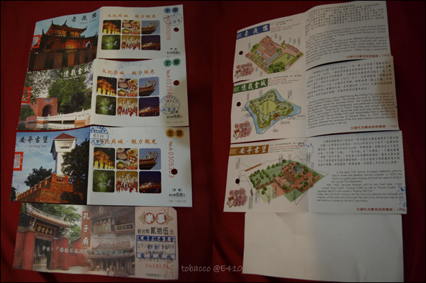 上面這幾個景點,有幾個需要入門票約50元,孔廟是25元,每種票的背面有古蹟的介紹和平面圖,孔廟票背面是空白的,當地人都不用買票,記得帶身分證就可以入場囉!