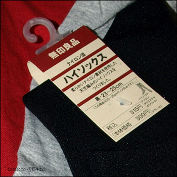 然後有兩雙黑色襪子,都是膝下中統襪,質料很好,一雙是最簡單的黑色平織襪,一雙上面還織格紋,折合台幣大概100元左右。