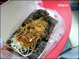 朋友說要吃米血,順便在民雄鵝肉攤買的,這樣一份50元,還附兩包花生粉+醬油膏,想不到滋味還不賴。