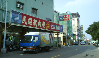 在民雄最熱鬧的區塊,就是民雄菜市場外圍有一條街整條都是鵝肉店,短短不到200公尺(那是多長阿?)的一條街林立了4、5家以上的鵝肉店,我挑了一家電視節目有去採訪過的鵝肉店採購!