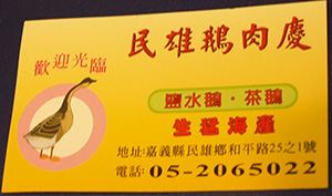 老闆塞了兩張名片給我,上面還有一隻鵝跟你說"歡迎光臨"!@@很有在地風味的名片阿!